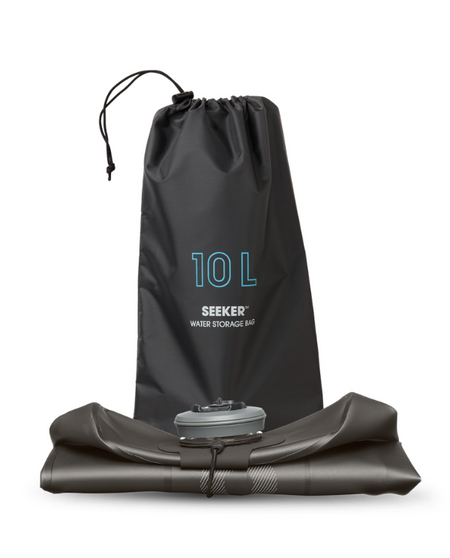 The Seeker 10L includes a reinforced bottom hanging loop ideal for gravity fed filtration systems and dispensing water to larger groups.